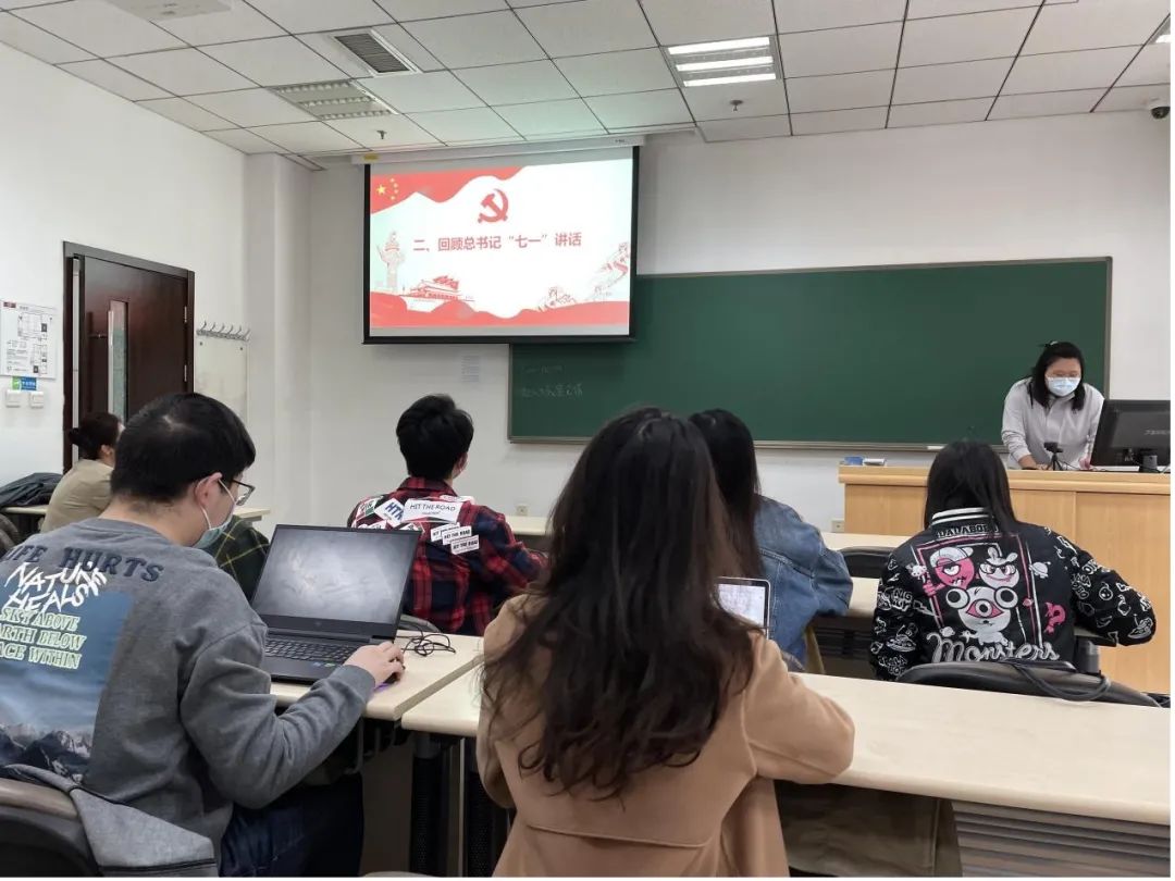本次党日活动主要有四个内容:回顾习近平总书记“七一”讲话;分时期回顾百年党史孕育的共产党人精神谱系;学史崇德——榜样事迹分享;学院党委书记高燕燕进行学习教育宣讲。