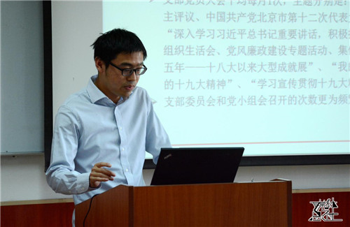 行政党支部书记韩佳随后进行了述职,她介绍了支部学习十九大精神及北京第十二次党代会等基本情况,并指出目前支部还存在党员管理不够体系化、支部普通党员在参与组织建设方面积极性还有待加强、学习活动形式有些单一等问题。针对这些问题她提出要加强自身的责任意识、切实增强支部凝聚力,以求真务实的工作作风开展支部工作。学院党委副书记唐颖针对述职内容,建议该支部在今后工作中,充分结合支部党员工作特点,优化利用时间,加强党建工作。