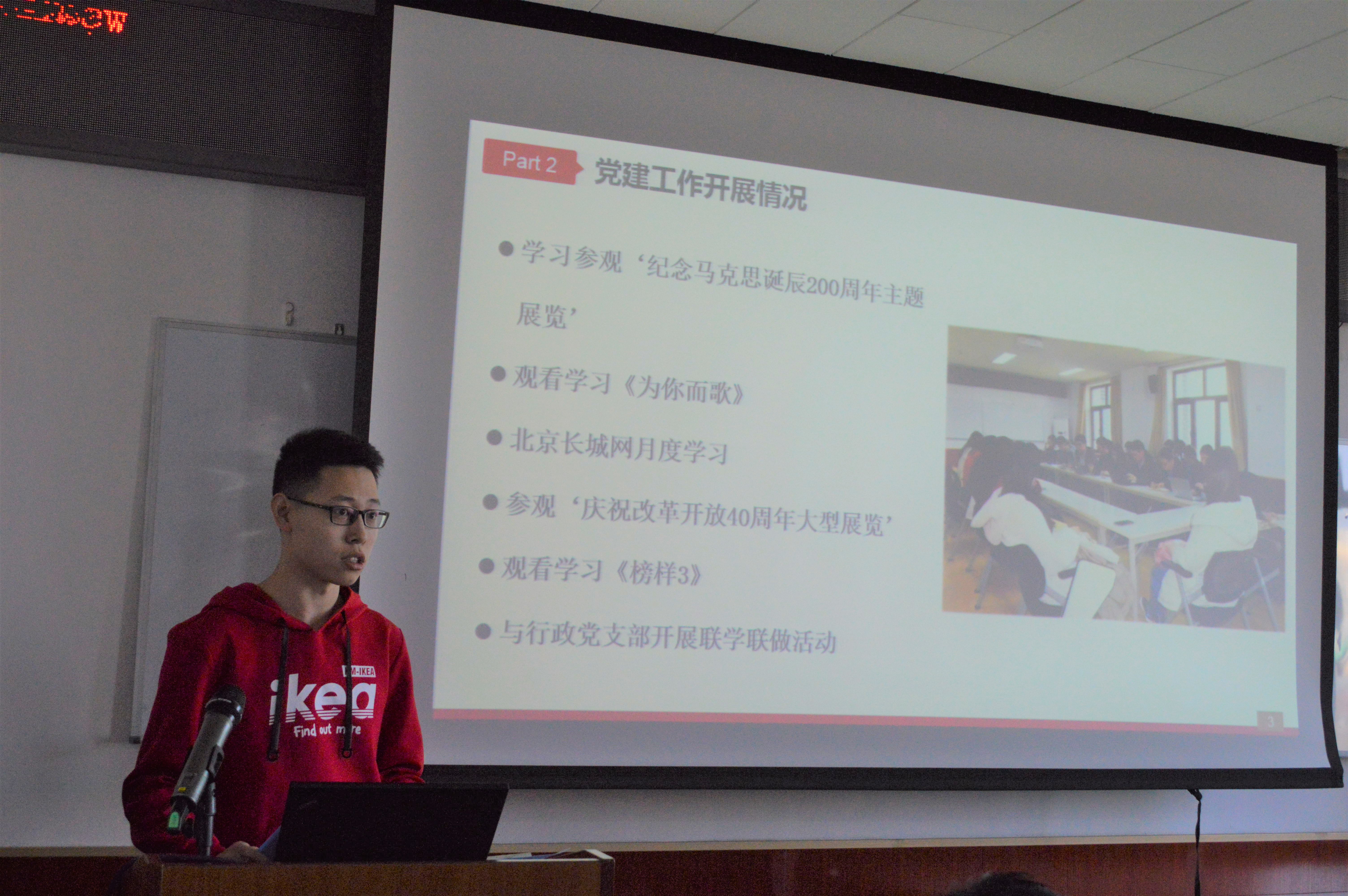 (社会学博士党支部何铭灏进行述职)