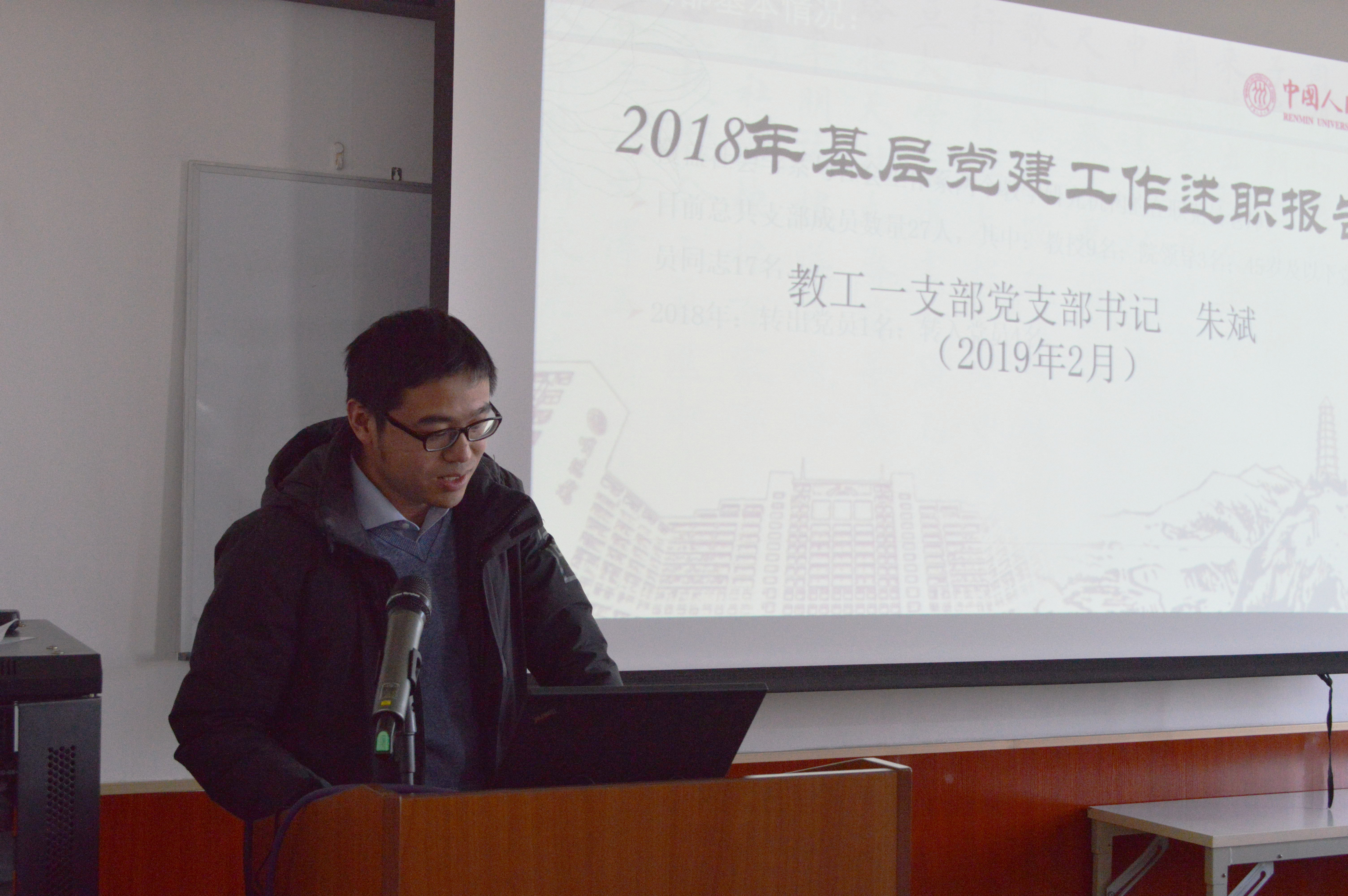 (教工一党支部朱斌进行述职)