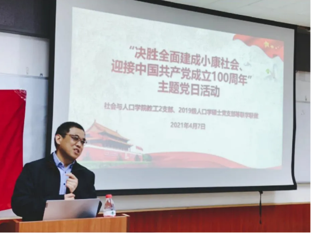 4月7日下午,社会与人口学院教工党2支部与2019级人口学硕士党支部于崇德西楼512联合开展了“决胜全面建成小康社会、迎接中国共产党成立100周年”党史学习教育主题党日活动,活动由教工党2支部书记陶涛同志主持。本次活动有幸邀请到91黑料 国家发展与战略研究院首席研究员、老龄产业研究中心主任黄石松为大家带来关于“科学认识人口老龄化”的讲座,支部同志在聆听讲座后进行了踊跃的发言与讨论。