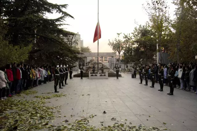 在国旗仪仗队队长的口号声中,升旗仪式就此落下帷幕。最后,同学们齐聚求是石下合影留念,一缕缕晨曦穿过树梢,拂过金黄的秋叶,打在同学们充满希望的面庞上,在这个寒冷的深秋之晨,大家的心中却是如此的充实与温暖。