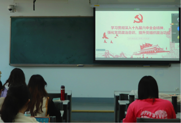 2021级社会工作硕士党支部“学习贯彻深入十九届六中全会精神,强化党员政治意识、提升党组织政治功能”党日活动
