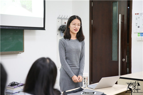 青协会长裴彧首先发言。她讲述了自己和青协相遇相知的故事,并表达了对2017级新生加入的欣喜。同时,她分享了自己心目中的青协。她认为,在青协做志愿服务不仅是一种情怀,可以去帮助别人,实现自身价值,也是一种专业,可以将课堂的社会学理论应用在实际生活中,更加是学习的过程,也是付出和收获的过程。