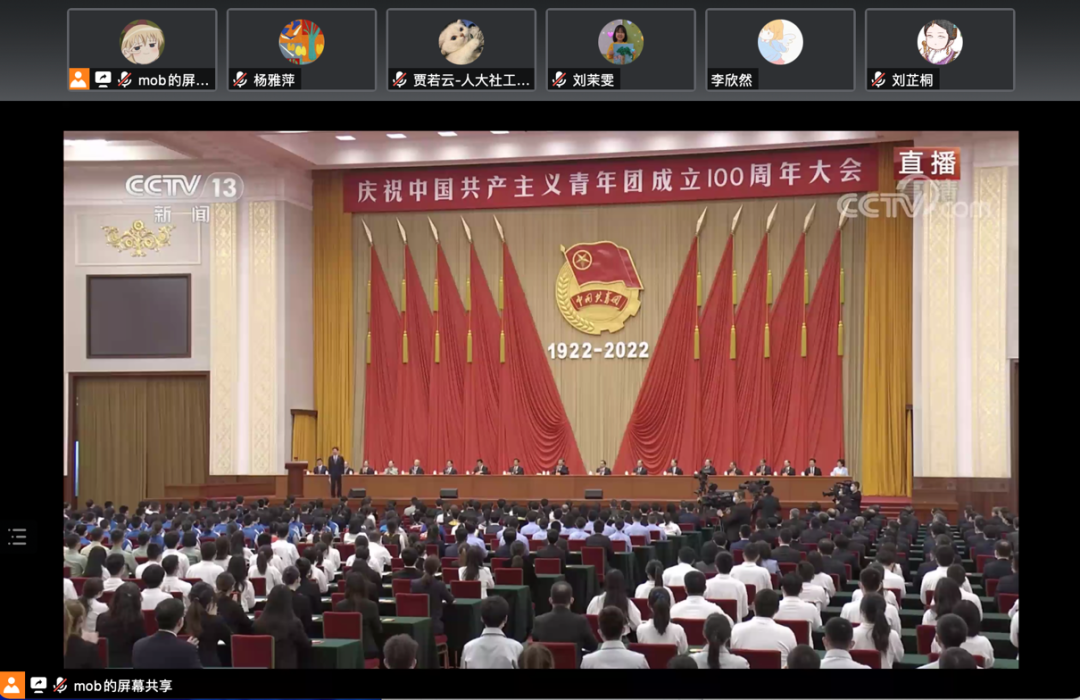 社会与人口学院团学系统深入学习习近平总书记在庆祝中国共产主义青年团成立100周年大会上的讲话精神