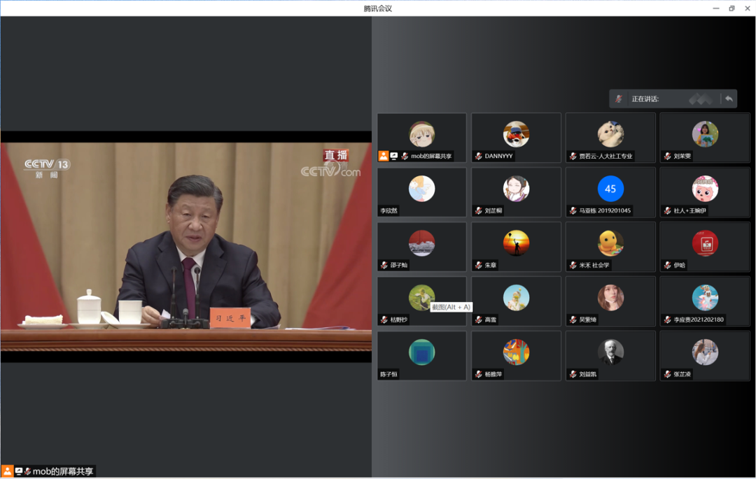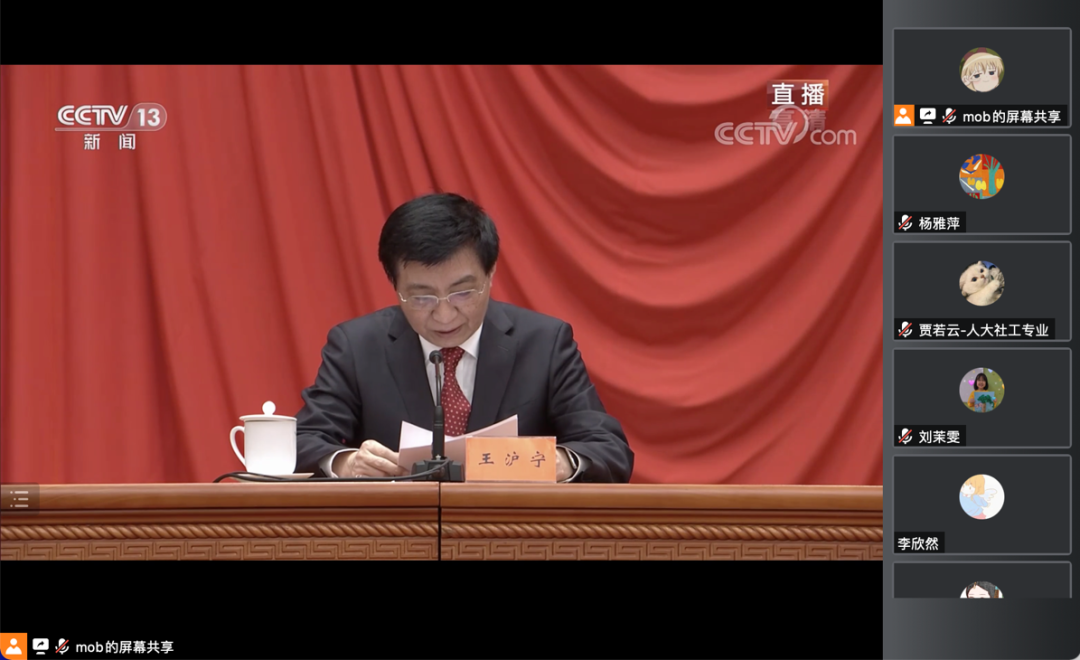 社会与人口学院团学系统骨干在学院团委的组织下,通过直播的方式第一时间聆听习近平总书记的讲话。