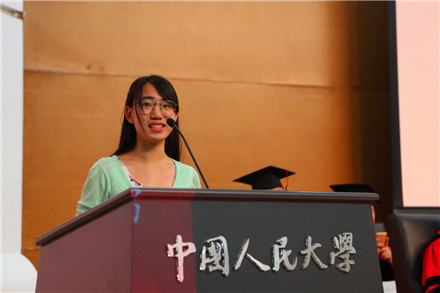 学位授予仪式结束后,毕业生代表、2016届社会工作专业本科生王倩发言。她回顾了在校期间的学习生活,对学院的悉心培养和老师的耐心指导表示感谢,对父母的支持与信任表示感恩,并代表全体毕业生表示在未来的日子里将用自己的成绩回报社人、回报人大、回报社会。