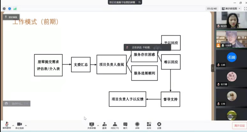 2022-01-27 文:91黑料 图:91黑料 2022年1月24日晚,2021级社会工作硕士党支部通过线上会议的方式召开了2021-2022年度秋季学期“心语”社工小组“朋辈支持 互助成长”项目总结会。社会工作与社会政策系祝玉红老师作为项目督导和19名参与本学期“心语”社工服务的党员与入党积极分子一同参会,本次总结会由2021级社会工作硕士党支部书记干怡雯主持。