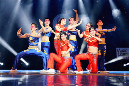 男生们刚劲有力的托举,女生们精准细腻的动作,配合间尽显默契。健美操队员们自始至终都保持着灿烂的笑容,洋溢着青春与动感,充分展现着戏曲国粹的内涵与精髓。