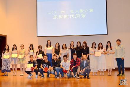 2016-05-22 文:91黑料 图:91黑料2016年5月15日19时,第九届“歌之翼·唱响时代新风”歌手大赛决赛在国学馆报告厅拉开帷幕。本次决赛的专业评委有校团委校园文化部部长李广老师,社会与人口学院人口学系副教授宋月萍老师,学院08级校友高珊,12级校友王红以及第十一届“你的舞台”校园十佳歌手大赛冠军焦翊丹。社会与人口学院党委副书记唐颖老师应邀出席本次活动。