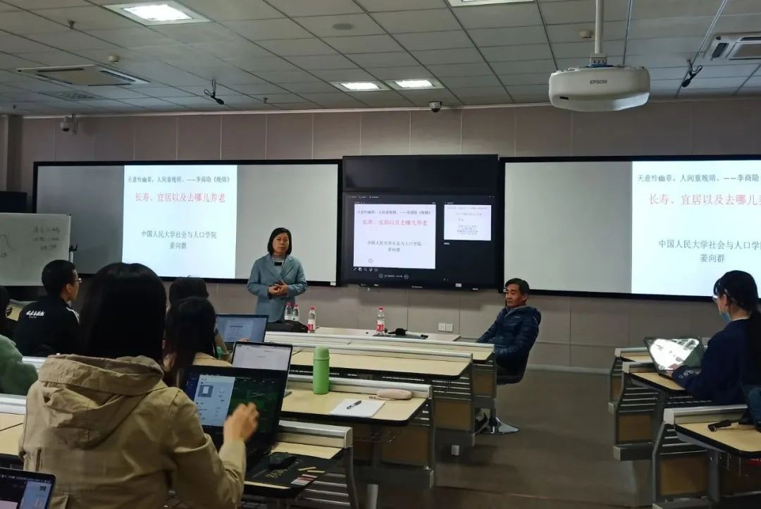 每一部分讲解结束后,姜老师都会询问大家针对本主题的内容是否存有疑惑,鼓励同学们提出来交流。在座师生们既就长寿之乡的环境共性、以房养老的可能性等问题进一步询问了姜老师的意见,也就长寿乡后续过度开发与商业化的问题与姜老师展开探讨。姜老师结合自身丰富的实地调研经验,指出目前我国长寿之乡在环境方面总体上具有原生态、绿水青山、气候条件得天独厚的共性,而对于长寿之乡的过度宣传和开发包装应该有所限制,要积极推动绿色产业的发展,方能进一步解决“长寿之乡”如何“长寿”的问题。