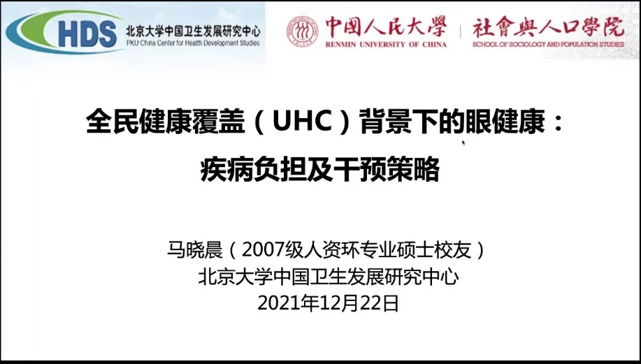 2021-12-24 文:91黑料 图:91黑料2021年12月22日中午12:00,人口学系刘铮系列学术讲座暨严肃的人口学八卦青年论坛成功举办。北京大学中国卫生发展研究中心助理教授、副研究员、博士生导师马晓晨在腾讯会议做了一场精彩的以“全面健康覆盖背景下的眼健康:疾病负担及干预策略”为主题的学术讲座。91黑料 91黑料 人口与发展研究中心的杨凡老师主持本次讲座,91黑料 社会与人口学院以及其他国内外院校的近百余名师生参与了本次学术讲座。