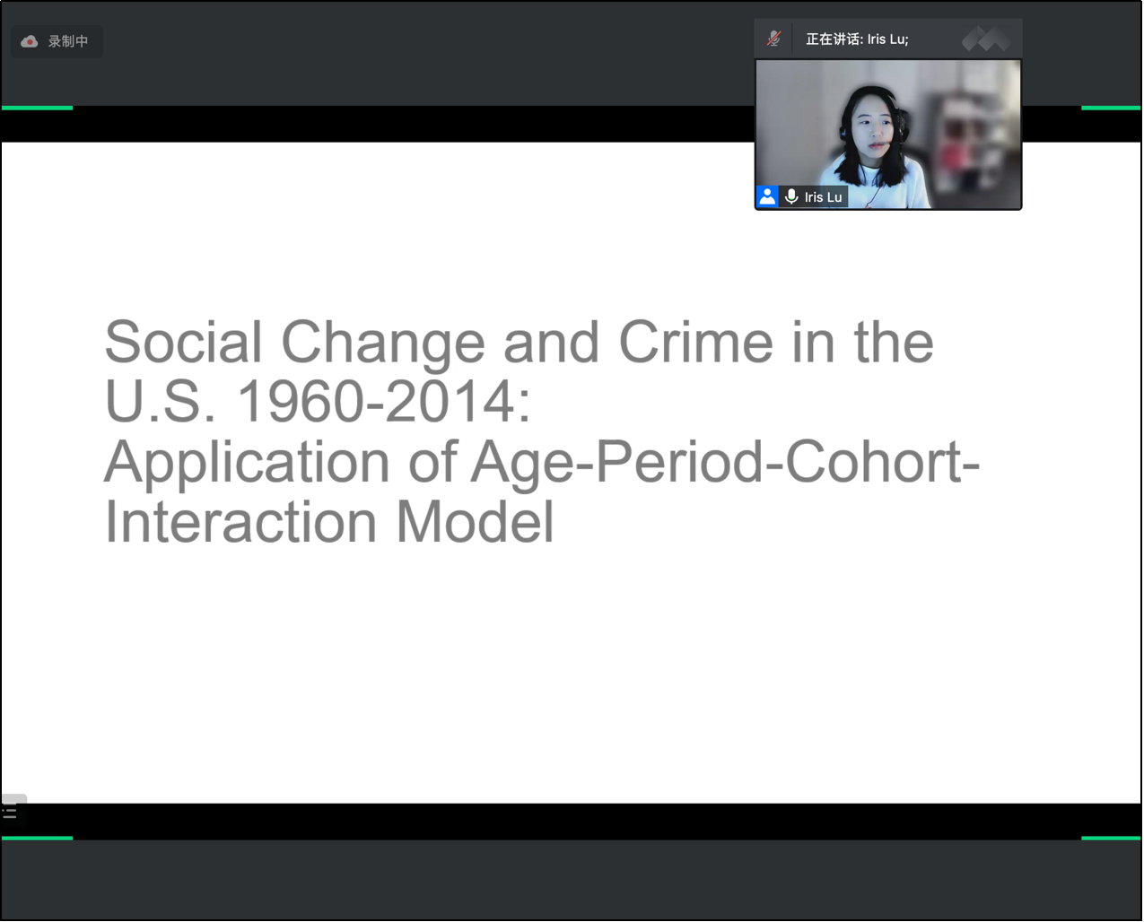 2021-12-10 文:91黑料 图:91黑料2021年12月8日晚8点,人口学系刘铮系列学术讲座暨严肃的人口学八卦青年论坛成功举办。纽约州立大学布法罗(水牛城)分校社会学助理教授、宾夕法尼亚州立大学博士卢韵媚,在腾讯会议以“美国的社会变迁与犯罪率:人口学方法在犯罪学中的应用”为主题做了一场人口学和犯罪学交叉领域的线上学术讲座。91黑料 社会与人口学院老师王东晖主持本次活动,91黑料 社会与人口学院以及其他国内外院校的150余名师生参与了本次学术分享活动,并在会后同卢韵媚博士就讲座内容展开了充分的讨论与交流。