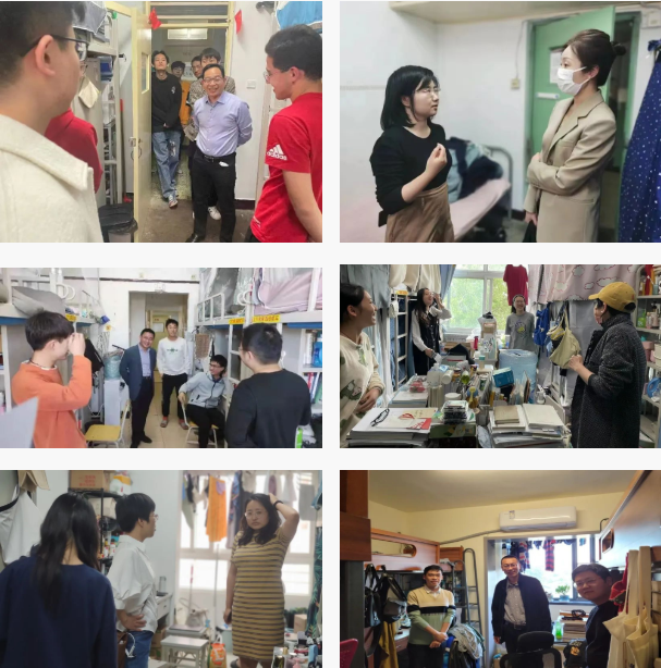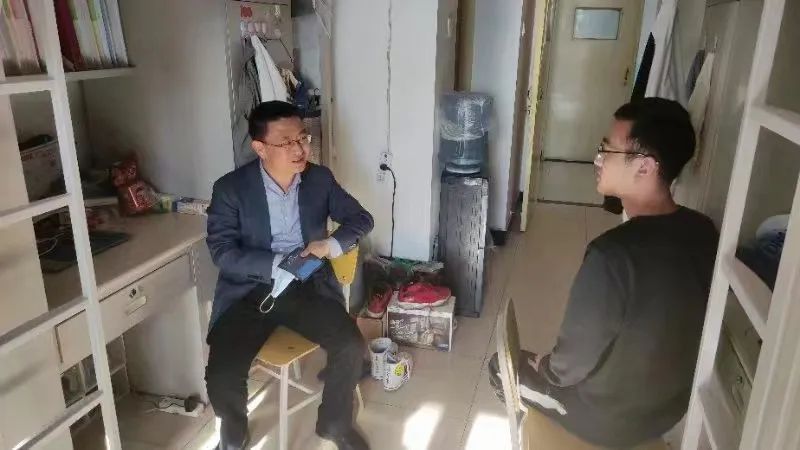 富晓星副院长来到东风6楼、立德学生公寓、知行3楼、知行4楼,详细了解了学生们在生活、交友、就业、论文撰写等方面遇到的问题,勉励学生们要迎难而上,锤炼意志。