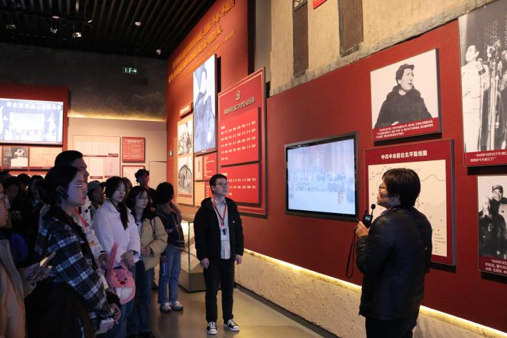 仪式结束后,同学们参观了西柏坡陈列展览馆。馆内以“新中国从这里走来”为陈列主题,通过十二个展厅再现了中共中央革命领袖们在西柏坡期间的革命实践活动。通过深入了解背后的历史故事,同学们见证了中国共产党从无到有、从完成战争蓝图到绘制建国蓝图的伟大转变,感受到了中国共产党和人民之间深厚的情感纽带。