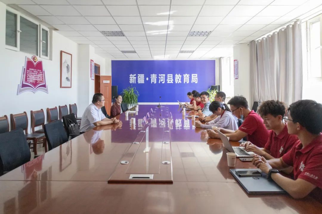 7月23日调研团队与青河县教育工委举行座谈会。县委常委、教育工委书记唐靖、教育局党组书记张燕、青河县教育局党组成员一级主任科员董志鹦、青河县初级中学党委副书记朱马德力出席本次座谈会,各位领导干部和与会师生进行了亲切而热烈的交流。