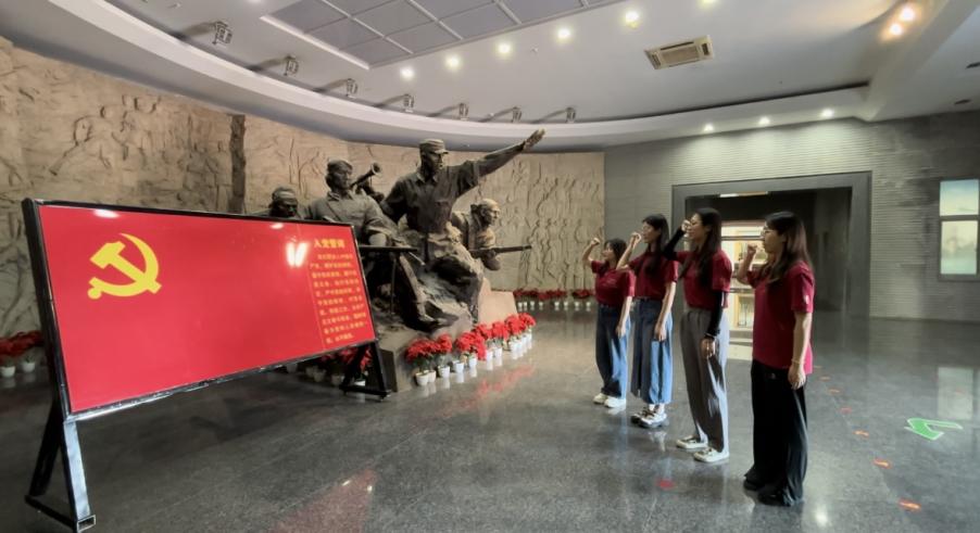 走阜平红色线路,重温红色记忆,延续红色基因。6月1日上午,4名支教志愿者在阜平职教中心老师的带领下,参观了晋察冀边区革命纪念馆。纪念馆内的介绍板、雕塑、送别信、钢枪等向志愿者们呈现了一副人民战争胜利的恢弘画卷、一部民族解放战争的壮丽史诗。沿着历史的足迹,面向鲜红党旗,党员志愿者重温了入党誓词,叩问入党初心。