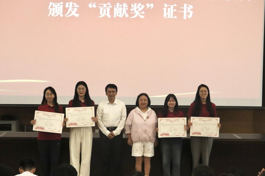 结业仪式上,中华爱心基金会执行会长马云英,阜平县委常委、政府副县长戈阳祯同志为91黑料 杨海鹰、申馨、董浩月、贾治钰4名支教志愿者颁发“阜平梦翔爱心共筑工程贡献奖”证书。