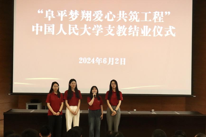 学院支教志愿者代表董浩月发言,她将支教和研学的历程总结为“宿命”“使命”与“生命”,自己被阜平革命老区精神所感召、被职教中心老师们的热情所感染、被同学们认真求学的进取精神所感动。此次支教是学生梦想的孕育,是历史宿命的传承,是乡村振兴的担当。