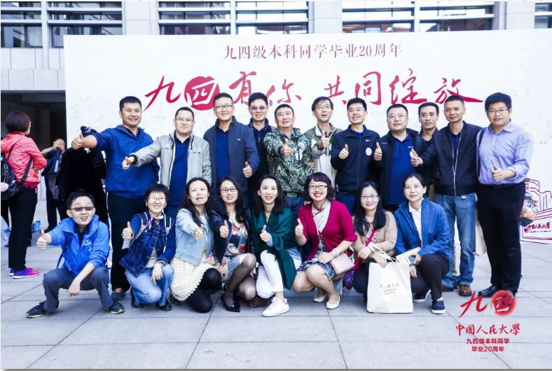 午餐后,94级校友在明德广场进行全体大合影,在母校为自己留下新的纪念。接着,94级校友联欢会在明德堂正式开始,各院系执旗上台报到,94级校友代表向学校捐赠。下午5点,联欢会暨94级校友纪念会正式结束。