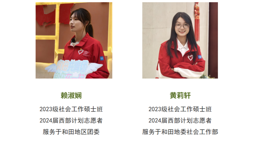 社会工作系2023级MSW学生赖淑娴、黄莉轩讲述了“社工学生西部行:在和田书写我们的故事”。他们以初识在和田、行走在和田、收获在和田三方面为脉络进行分享。赖淑娴同学首先介绍了和田以及西部计划的情况,接着分享了自己在基层的下乡调研等经历。黄莉轩同学重点介绍了社会工作部的主要职责,以及自己在和田地委社会工作部的具体工作。最后她解读了社会工作在基层工作中的专业性,强调在工作生活与人际交往中收获温情。