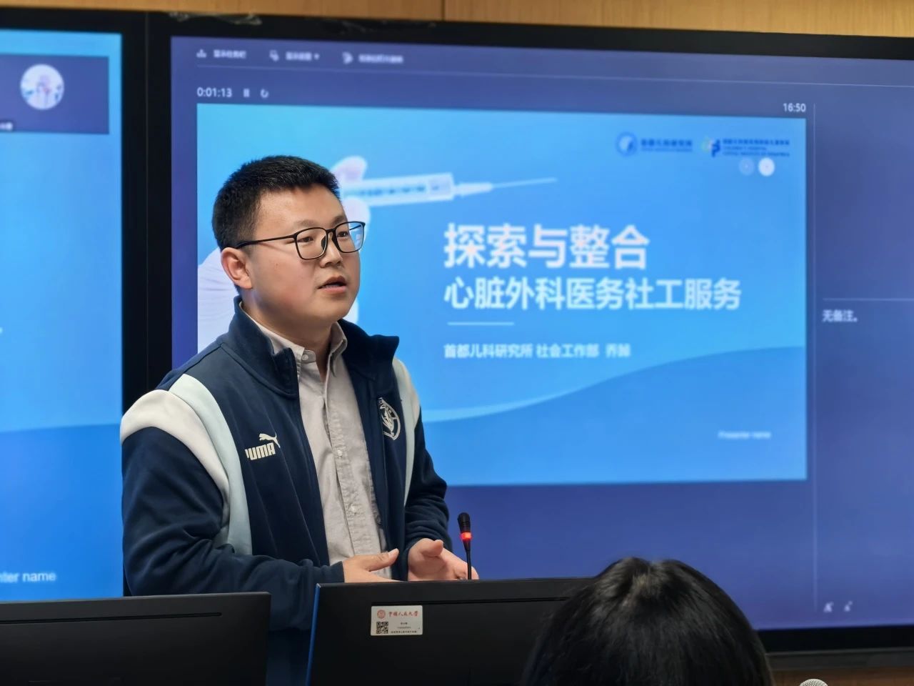 首都儿科研究所社会工作部乔踔以“探索与整合:心脏外科医务社会工作服务”为主题进行分享。他介绍了首都儿研所的儿科医务社会工作服务体系构建情况,为了满足心脏外科在心理情感、医疗信息及决策支持、经济及社会支持三方面的需求,机构建立了多学科团队与治疗联盟,开展模块化课程体系设计,与中央美院合作开发了绘本等兼具艺术性和专业性的服务工具,在通州院区建设了公益空间,并赴多地开展先心病义诊筛查活动,最终形成全流程参与、全空间覆盖的服务体系。