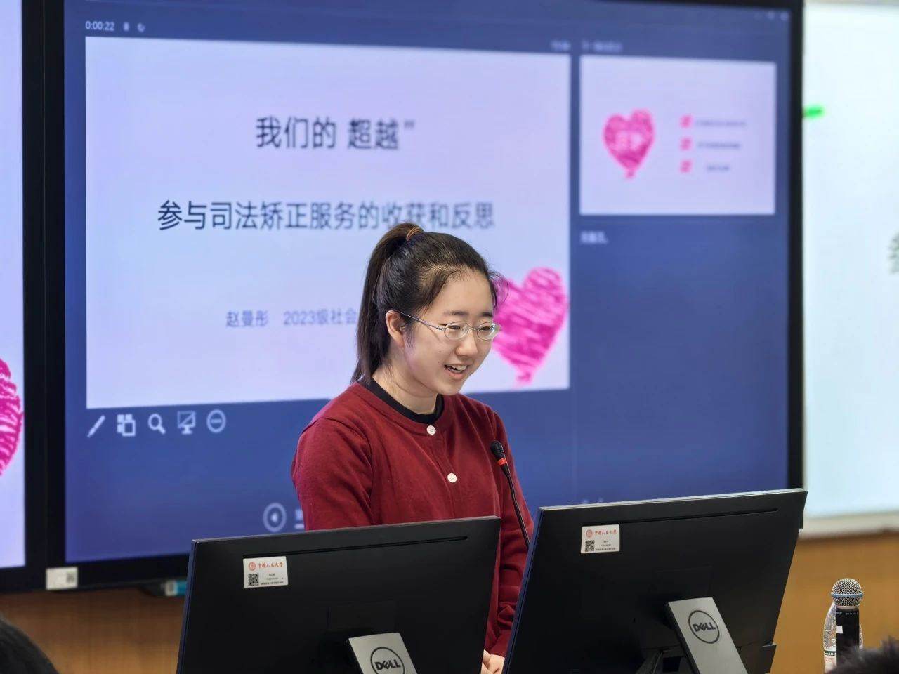 社会工作系2023级MSW学生赵曼彤分享了参与司法矫正服务的收获和反思。她首先介绍了自己的实习机构——北京超越社工事务所的基本情况和服务的主要内容,包括合适成年人服务、训诫帮教和教育矫正服务、被害人救助服务、犯罪未成年人社会调查服务等。接着,她分享了实习中自身价值观、专业价值观和实务实践中的张力和自我的成长。最后,她对自己的实习经历做了总结,认为实习经历帮助自己进一步理解价值伦理、学习实务技巧,放平心态、给自己成长的空间,并通过实务经历反观自身,深化自我认知。