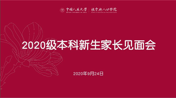 2020-09-25 文:91黑料 图:91黑料9月24日晚19点30分,社会与人口学院2020级本科新生线上家长见面会顺利举行。社会与人口学院院长冯仕政、党委书记高燕燕、党委副书记唐颖、副院长黄家亮、副院长富晓星、副院长宋月萍、社会学系主任王水雄、人口学系主任杨凡、社会工作与社会政策系主任张会平出席,本科新生班主任、学院行政部门相关老师及百余名新生家长共同参加了此次线上见面会。会议由学院党委副书记唐颖主持。