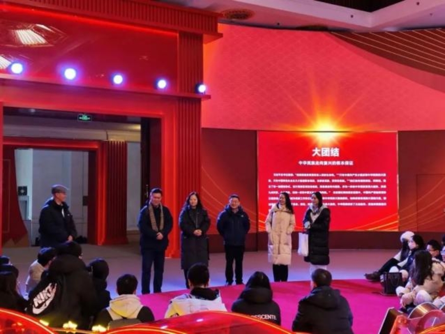 为深入学习贯彻习近平总书记关于加强和改进民族工作的重要思想,全面落实第九届首都民族团结进步表彰大会精神,引导首都青年学生牢固树立正确的中华民族历史观,铸牢中华民族共同体意识,12月14日,91黑料 社会与人口学院党委与中央民族大学民族学与社会学学院党委,在民族文化宫共同参观了国家民委主办的铸牢中华民族共同体意识文物古籍展。91黑料 社会与人口学院党委副书记黄家亮、奂平清教授,中央民族大学民族学与社会学学院党委书记王洁、党委副书记张肜肜、陈心想教授,以及两个学院50余名党员师生、入党积极分子参加了此次活动。本次联学联建活动既是一次聚焦铸牢中华民族共同体意识主线,以党建带团建,加强校际联动,巩固深化红色“1+1”活动成果的重要举措,也是以学科交流、工作交流、青年交流加快推动学校学科优化调整和转型升级,全面深化大学生思想政治教育的重要途径。