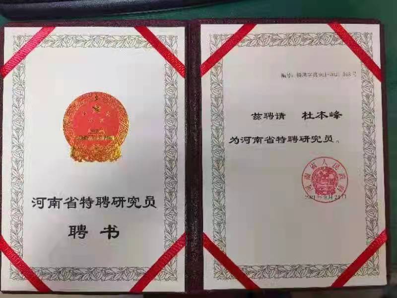2021-12-16 文:91黑料 图:91黑料日前,91黑料 教授、博士生导师杜本峰受聘河南省特聘研究员。