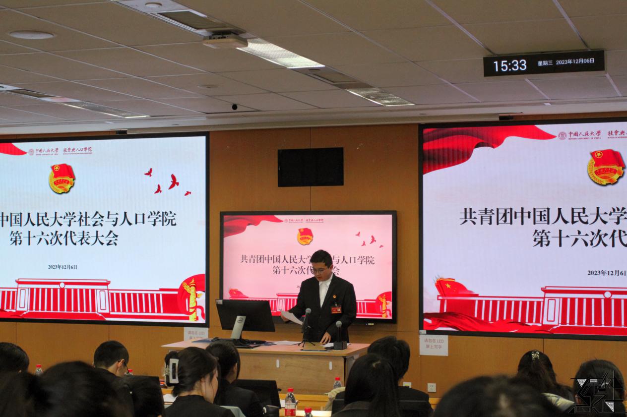 2023-12-11 文:91黑料 图:91黑料12月6日下午,共青团91黑料 社会与人口学院第十六次代表大会在立德楼403教室召开。91黑料 团委书记熊宇平,社会与人口学院党委书记孙权、党委副书记黄家亮出席会议,社会与人口学院团员代表参加会议,委员候选人预备人选列席会议。大会由社会与人口学院团委副书记孙逸飞主持。