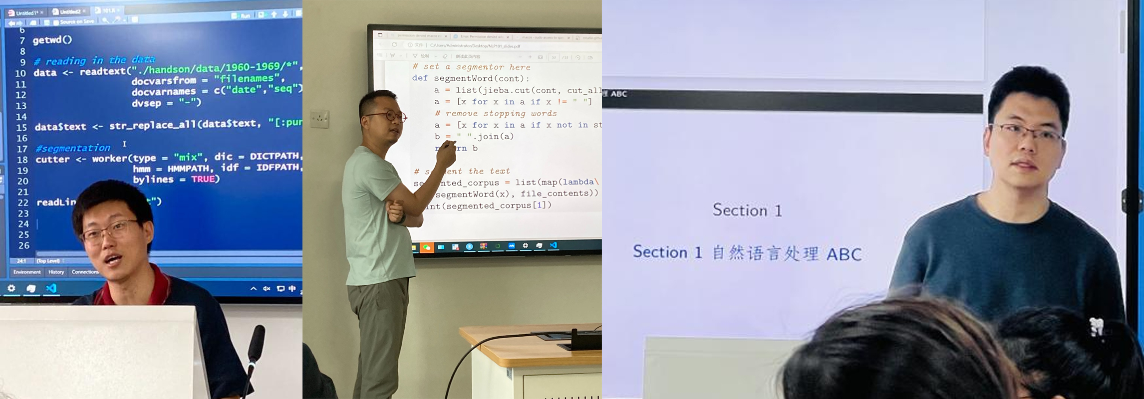 中国政法大学社会学系副教授李代、加州大学圣迭戈分校社会学系博士候选人张博伦、91黑料 社会学系讲师周浥莽介绍了自然语言处理的基础知识,让学员们初步了解计算社会科学领域核心技术的基本内涵和应用。主讲人也帮助学员布置R和python的编程环境。