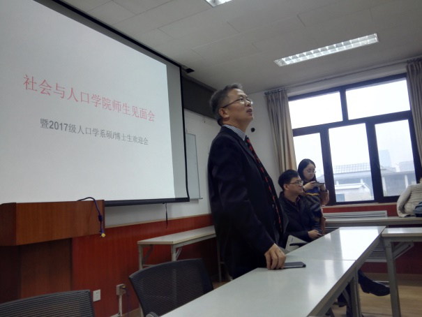 人口学系系主任段成荣教授首先对各位2017级硕士和博士新生们的到来表示热烈的欢迎,对出席的研究生导师们表示致意。段主任接着简要回顾了人口学系的历史,重点介绍了本系一直保留着导师与研究生进行集体交流会的传统,突显了此次见面会的目的和意义。此外,适逢今年是人口学系与英国卡迪夫大学社会科学学院交流项目实质性启动的第一年,段主任对卡迪夫大学博士来本系交换学习的博士生生Ross Goldstone的到来表示欢迎,并指出:学院和系近年来日益推进教学、科研的国际化,不少国际交流与合作项目取得实质性进展,师生外出交流机会日益增多,研究生参与国际交流非常有必要,勉励研究生新生们要积极参与,利用好这些机会,不断提升自己。