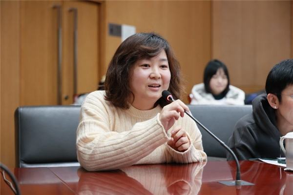 “突出贡献奖”获得者代表、培训部教务主管潘思岑发言