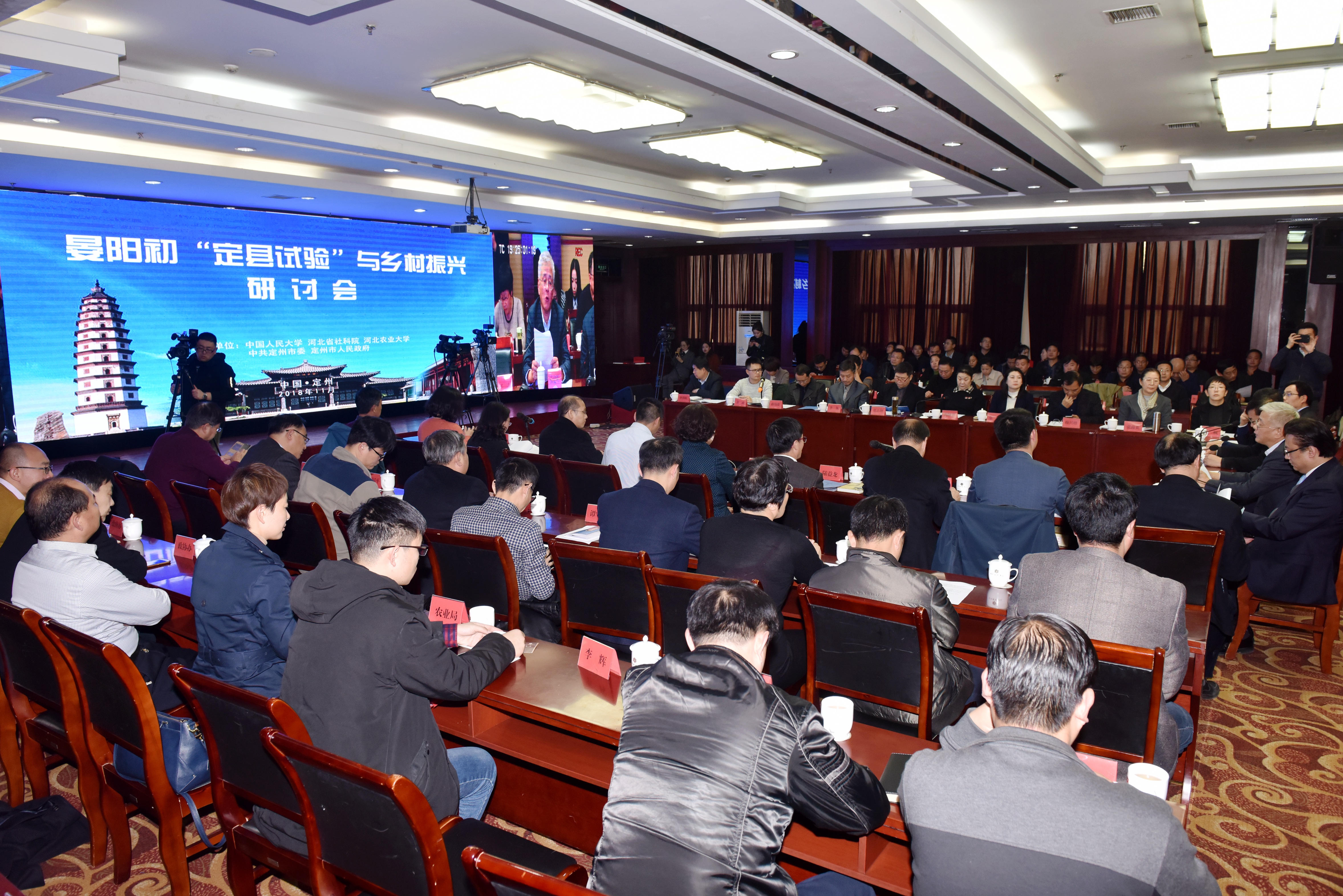2018-11-20 文:91黑料 图:91黑料2018年11月16-17日,由91黑料 、河北省社科院、河北农业大学和定州市委市政府联合举办的“晏阳初定县实验与乡村振兴研讨会”在河北省定州市隆重举行。91黑料 党委常务副书记张建明,河北省社科院党组书记、院长康振海,河北农业大学党委常委、副校长李彤,以及定州领导张涛、王居野、梁峰、魏洪彬、张静、王建义等出席会议。来自全国30余个教学科研单位、地方政府、新闻媒体,以及定州市各委办局、乡镇的100余名代表参加会议。