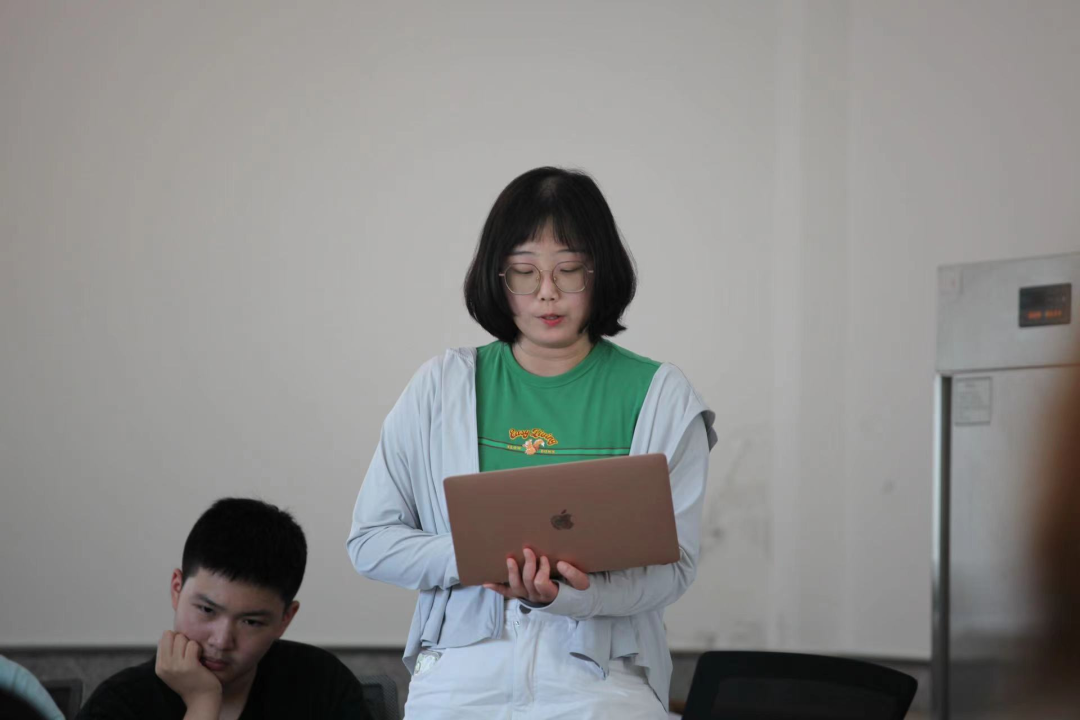 一组组长刘芷桐向大家汇报了本组的研究主题和方案。基于宏观结构与微观个体嵌入互构的框架,小组将切入口落在个体的微观际遇上,在真实的生活世界中展现宏观层面的变迁如何落在个人身上,以及个人选择如何影响转型进程。接下来小组成员将分成小队对不同类型群体中的典型人物进行深度访谈。随后,李丁老师做出点评。他指出宏观结构和变迁背景下个体/群体异质性是社会学研究的经典路径,并提供了很多可借鉴的研究案例。