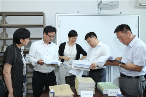 之后,专家组对社会与人口学院关于本科人才培养的各项规章制度、自评报告的各类支撑材料,以及近三年本科期末考试试卷、教学大纲、毕业论文、实习报告等教学材料进行了认真细致的检查。