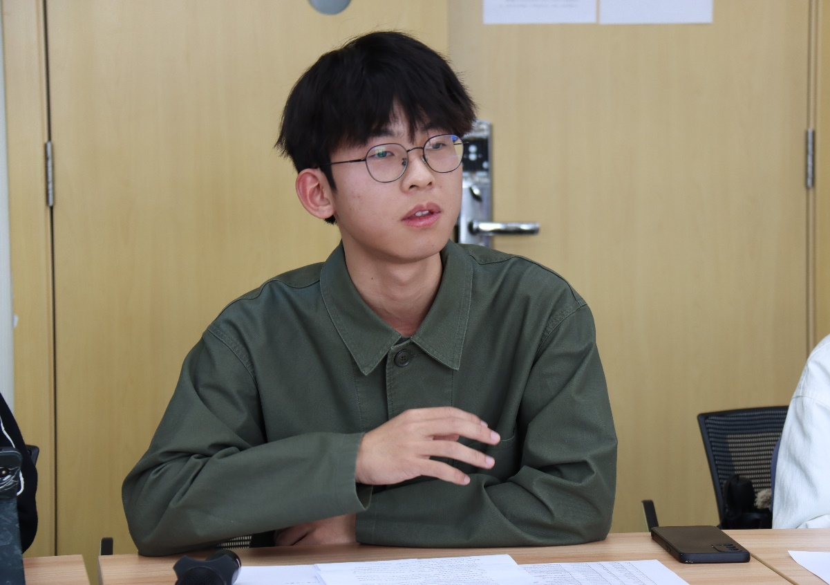 2021级本科生卢浩楠分享了一年多来在培训部做学生助理的工作经历和学习心得。从最初的拘谨,到在培训部老师的指导和鼓励下参与不同的工作,无论性格、能力还是学业都得到锻炼,受益匪浅。他说,这一年多来体会最大的还是学院的开放与包容,学院很鼓励大家去尝试新鲜事物,这次田野课堂的组织就很有代表性,希望同学们能够多向社会走进一些,接触不一样的东西,为今后的人生多做些准备。